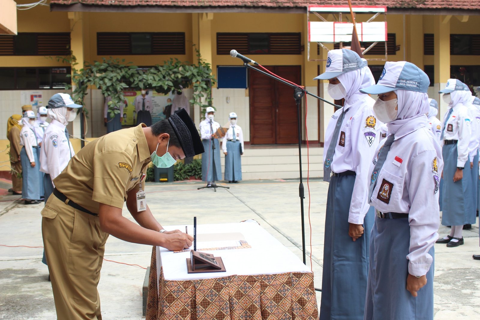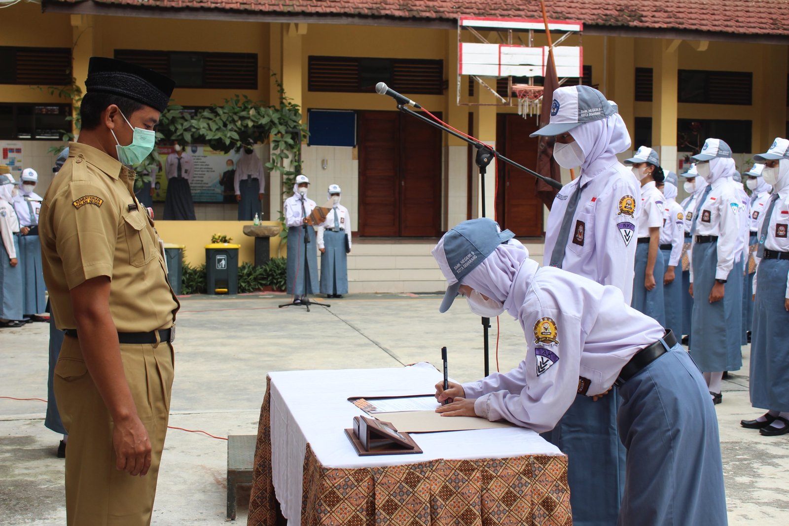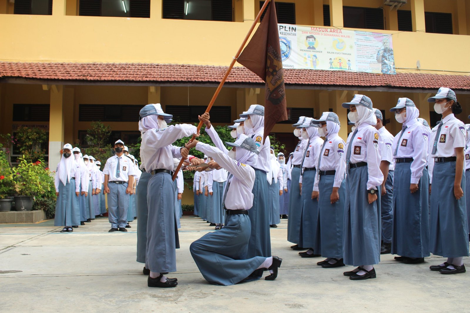 Pagi yang cerah dan indah, pada hari Senin, 31 Januari 2021 di lapangan SMK Negeri 9 Semarang tepat pukul 07.00 dilaksanakan Apel Pagi sekaligus Pelantikan Pengurus OSIS Periode Tahun 2021/2022.